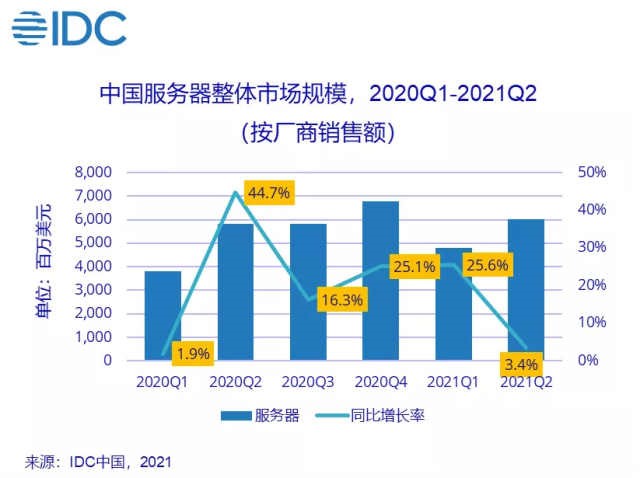 据IDC《2021年Q2中国服务器市场数据报告》显示,上半年我国服务器出货量为170.6万台,同比2020年上半年增长8.9%;得益于在疫情控制方面取得的成功,中国经济在2021年迎来强劲复苏,大部分企业基于业务需求,在服务器采购上均呈现出旺盛的需求。